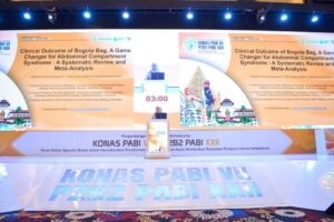 Al Mazida Fauzil Aishaqeena, M.Biomed memukau dewan juri dan audiens melalui presentasinya yang berjudul “Clinical Outcome of Bogota Bag, A Game Changer for Abdominal Compartment Syndrome : A Systematic Review and Meta-Analysis “. Riset tersebut membahas tentang opsi prosedur lain dalam menangani pasien dengan open abdomen dan mencegah suatu abdominal compartment syndrome
