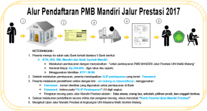 Jadwal Penerimaan Mahasiswa Baru UIN Maulana Malik Ibrahim Malang Jalur MANDIRI PRESTASI 2017 =========================================== Program Studi, klik PROGRAM STUDI & PERSYARATAN Biaya Pendaftaran sebesar : Rp.300.000,- (tiga ratus ribu rupiah) Penjaringan calon mahasiswa baru UNIVERSITAS ISLAM NEGERI MAULANA MALIK IBRAHIM MALANG berdasarkan prestasi non-akademik siswa yang berasal dari SMA/MA/AMK/MAK/Diniyah Ulya (Mu’adalah) tanpa ujian tertulis dan diselenggarakan […]